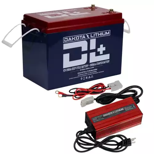 However, normal lithium batteries are not able to be used as a starting battery. To get a single battery that replaces your vehicle’s battery, you’ll need a special lithium starting battery like the Dakota Lithium 12V 280Ah+ LiFePO4 Deep Cycle and Starting Battery.